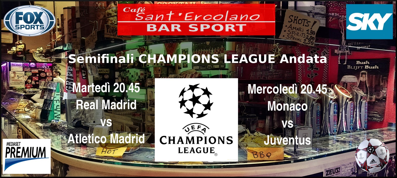 Semifinali Champions Andata Pubblicato daDaniele Rossi Antognelli2 Maggio 2017Pubblicato in: Senza categoria Champions League oggi e domani con la diretta TV delle semifinali di andata: Martedì ore 20.45 Real Madrid – Atletico Madrid Mercoledì ore 20.45 Monaco – Juventus Condividi: Condividi su X (Si apre in una nuova finestra) X Condividi su Facebook (Si apre in una nuova finestra) Facebook Email a link to a friend (Si apre in una nuova finestra) E-mail Share on LinkedIn (Si apre in una nuova finestra) LinkedIn Share on Pinterest (Si apre in una nuova finestra) Pinterest Condividi su Telegram (Si apre in una nuova finestra) Telegram Share on Threads (Si apre in una nuova finestra) Threads Condividi su WhatsApp (Si apre in una nuova finestra) WhatsApp Mi piace Caricamento... Correlati
