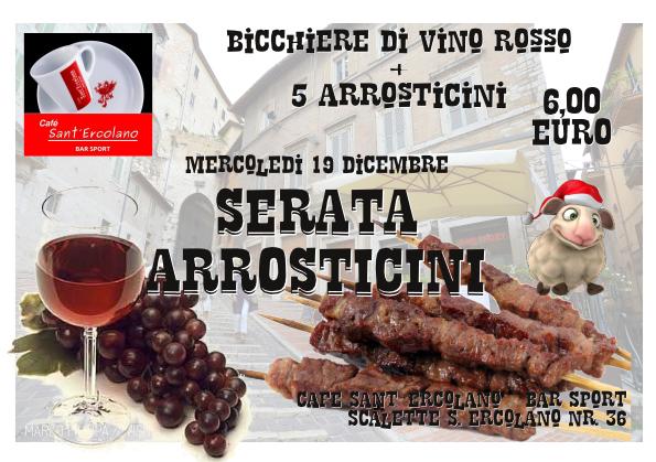 Serata arrosticini abruzzesi di pecora e vino rosso… 6 euri, bicchiere di vino e 5 arrosticini… Poi arrosticini al pezzo fino scoppiare, 80 cent l’uno! Daje de rustell!!!!
